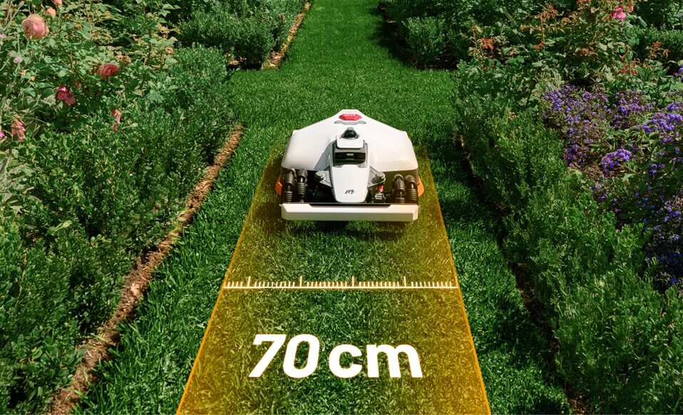 Robot pracuje w oparciu o zaplanowane trasy, poruszając się równoległymi pasami zamiast losowego ruchu. Takie podejście znacząco skraca czas pracy i poprawia wygląd trawnika, umożliwiając: