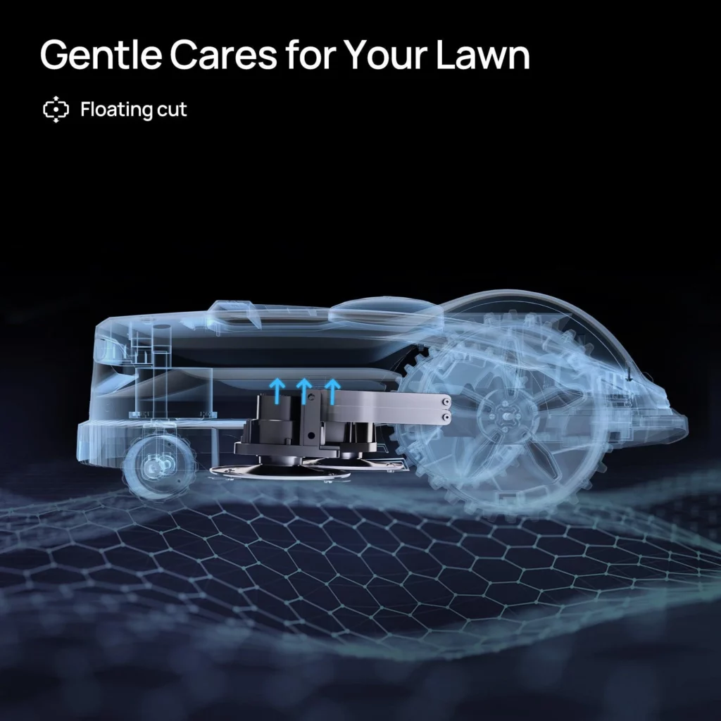 Floating cut czyli zaawansowany system pływających tarczy tnącyc dostosowuje koszenie do konturów Twojego trawnika, zapewniając gładkie i równe cięcie na wszystkich nawierzchniach. Ostrza poruszają się w górę i w dół, dostosowując się do kształtu terenu, dzięki czemu robot z łatwością kosi zarówno gęstą trawę, jak i trudno dostępne miejsca