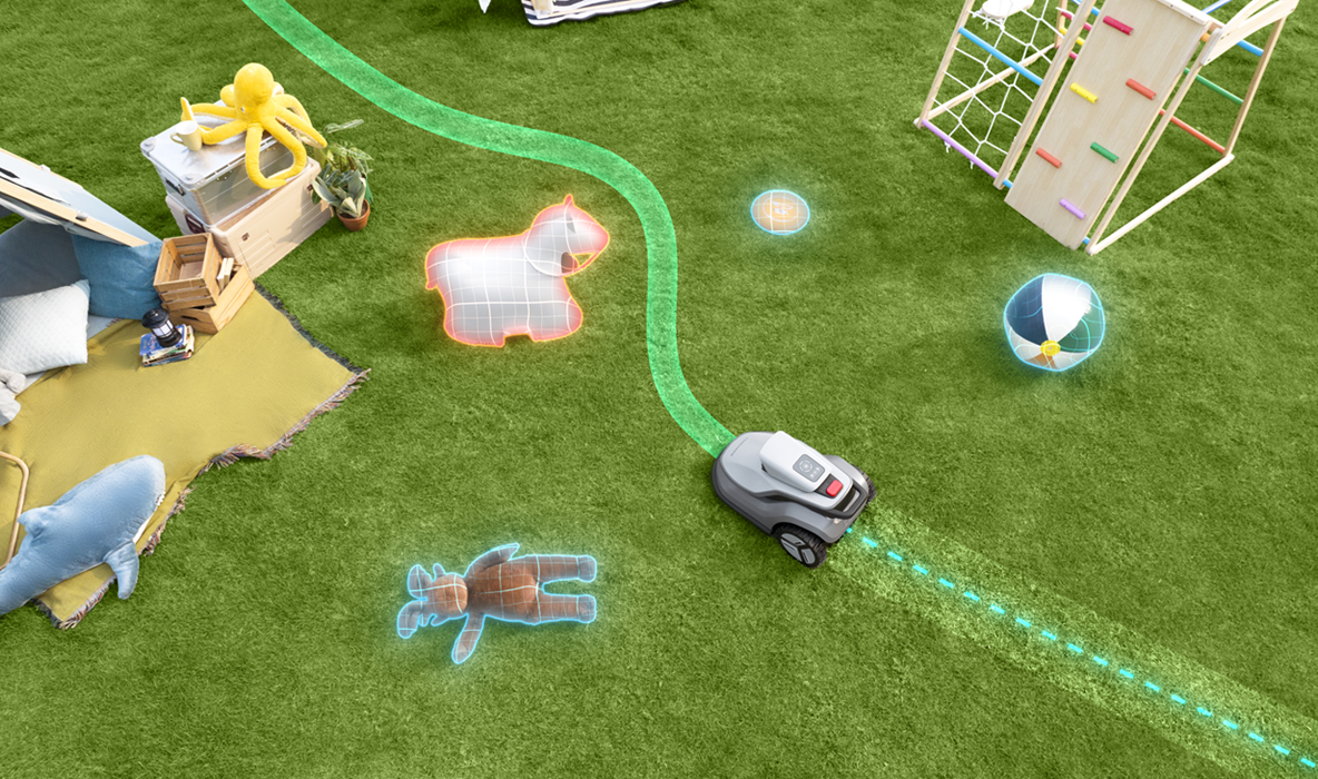 - Samodzielne mapowanie w technologii 3D – dzięki technologii wizyjnej ze wspomaganiem AI robot tworzy dokładny model trawnika już przy pierwszym uruchomieniu.