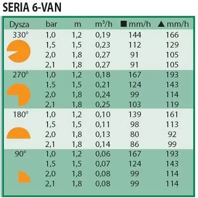 Charakterystyka dyszy Rain Bird 6-VAN: