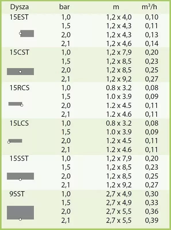 Charakterystyka dyszy Rain Bird MPR 15 RCS: