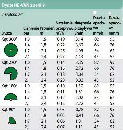 Charakterystyka dyszy Rain Bird HE-VAN 8