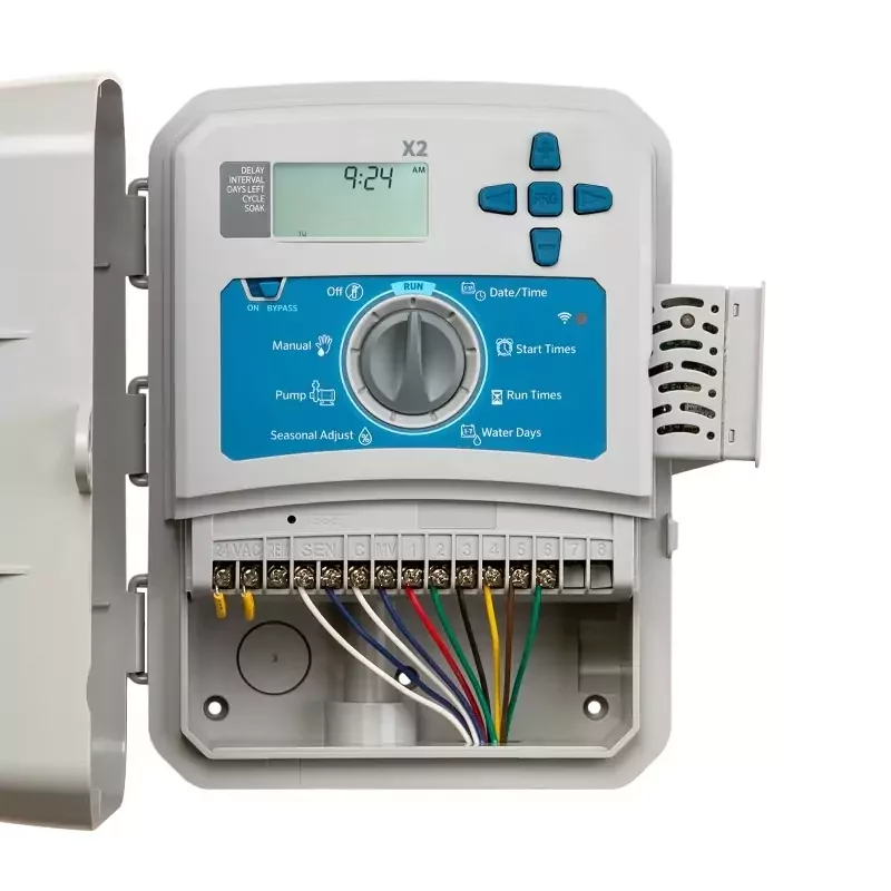 Moduł WAND jest wyposażony w najnowszą bezprzewodową technologię Bluetooth® umożliwiającą zdalną obsługę systemu za pomocą smartfona. Opracowany z myślą o profesjonalnych wykonawcach moduł umożliwia łatwą instalację sterownika X2 za pomocą aplikacji Hydrawise, jeśli połączenie Wi-Fi jest niedostępne. Moduł WAND zapewnia również dostęp do sterownika, gdy znajduje się on w trudno dostępnym miejscu lub konieczne jest zachowanie dystansu ze względów bezpieczeństwa lub względów zdrowotnych.